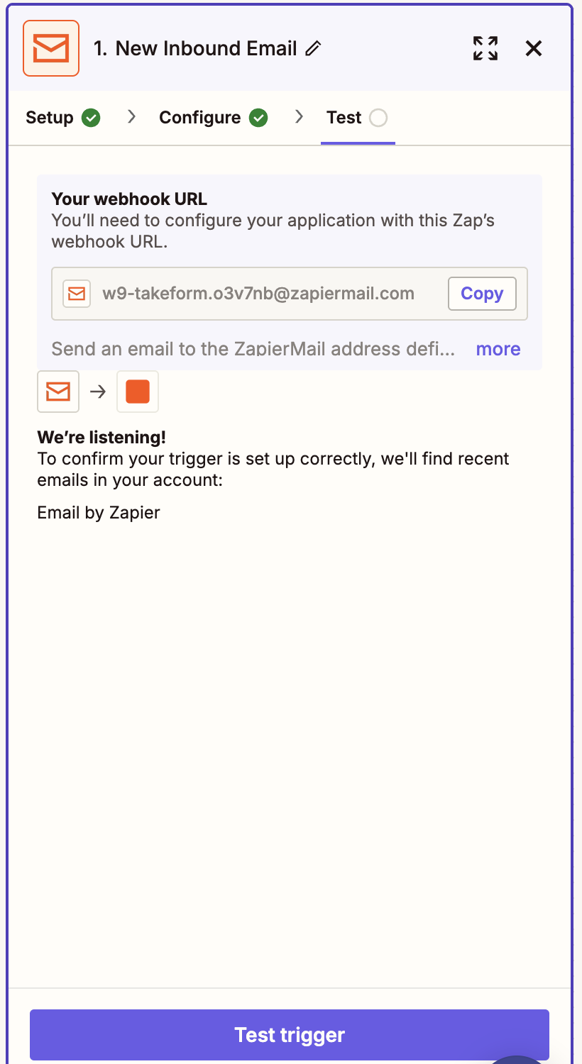 2. Add a Zapier Email Trigger (or another email platform that you want to use)